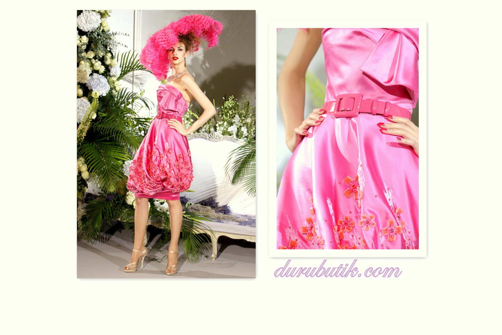 Pembenin en güzel tonlarını kullanır Galliano… Fuşyadan mora dönen pembeye kadar göze en güzel gelen tonları kumaş oyunlarıyla sunar moda dünyasına…