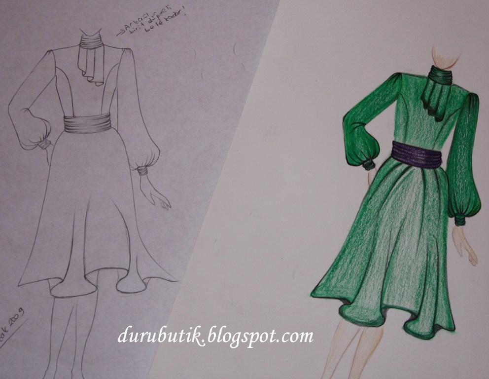 Bu aralar sadece çiziyorum. Boyamaya pek vaktim olmuyor. En son bunu boyadım. Yakasında godesi olan bir elbise…