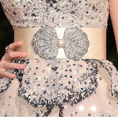 Gecenin kraliçesi Kate Winslet… İlk bakışta sade görünen kıyafeti aslında çok çarpıcı… Ön görünüş olarak baktığım fotoğraflarda eteğin üzerindeki tül detayının göğüs altından başladığını farkettim. Ve eğer göğüsten gelmişse tül, mutlaka arkasında da vardır diye tahmin ettim. Araştırmalarım neticesinde öyle olduğunu gördüm:)))