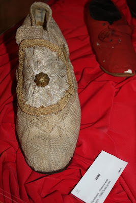1600 yılından dantel kaplama süslü bir erkek ayakkabısı… Bu dönem Barok dönemi olarak adlandırılır. Modanın en renkli ve en ihtişamlı olduğu dönemdir. Sadece tekstilde değil mimaride de çok detaycı ve harikulade bir çağdır. Bu ayakkabıdan da anlaşılacağı üzere erkekler çok süslü ve ihtişamlıdır. Eski çağlara ait filmleri izleyenler hatırlarlar.. bol erkek gömlekleri, kolları ve yakaları fırfırlı, hatta yakadan aşağı sallanan tüller..saçlar uzun ve yapılmış:))
